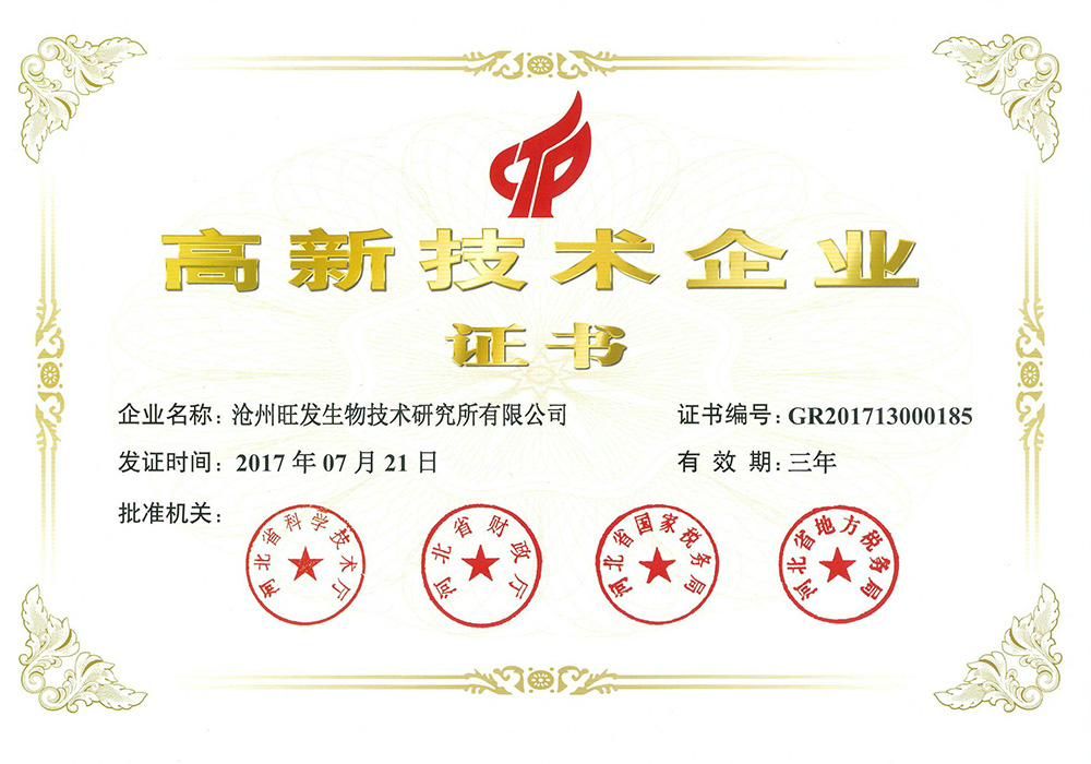 滄州旺發(fā)生物技術(shù)研究所有限公司創(chuàng)立于1993年,是集研發(fā)、生產(chǎn)、銷售于一體的微生態(tài)制劑生產(chǎn)“高新技術(shù)企業(yè)”、“國(guó)家知識(shí)產(chǎn)權(quán)優(yōu)勢(shì)企業(yè)”、“河北省農(nóng)業(yè)產(chǎn)業(yè)化重點(diǎn)龍頭企業(yè)”、“河北省創(chuàng)新型中小企業(yè)”、“河北省專精特新中小企業(yè)”,目前,公司注冊(cè)資金1360萬元,生產(chǎn)占地80畝,擁有液、固態(tài)結(jié)合全自動(dòng)發(fā)酵生產(chǎn)線及標(biāo)準(zhǔn)化全自動(dòng)液態(tài)發(fā)酵、噴霧干燥生產(chǎn)線。