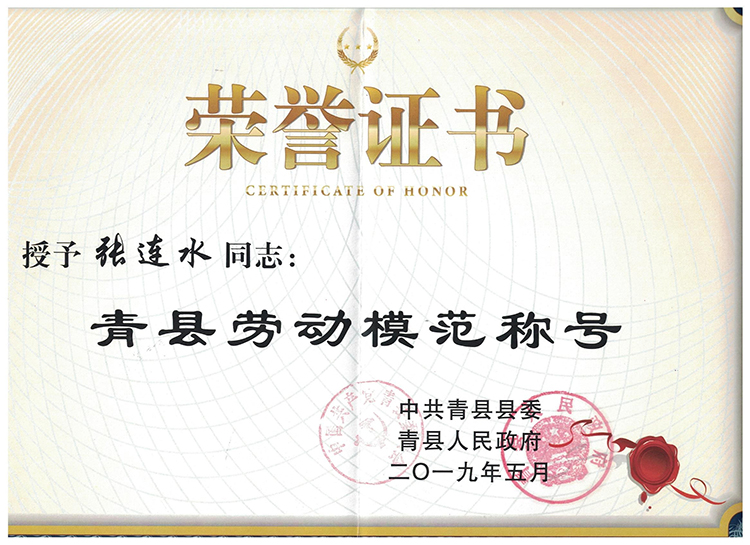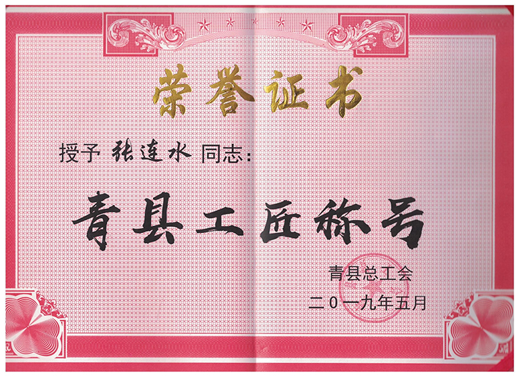 2013年以來,全縣各族人民深入貫徹落實習近平新時代中國特色社會主義思想和黨的十九大及十九屆二中、三中全會精神,積極投身到加快建設創新驅動經濟強縣的偉大事業中,在推進轉型發展、脫貧攻堅、同步小康進程等各條戰線上,涌現出一大批品德高尚、愛崗敬業、業務精湛、貢獻突出的先進模范人物。為弘揚先進模范人物的時代精神,凝聚和傳播正能量,縣委、縣政府決定,授予張連水同志“青縣勞動模范”和“青縣工匠”稱號。